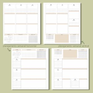 – Planejamento semanal (duas opções de layout: vertical e horizontal);